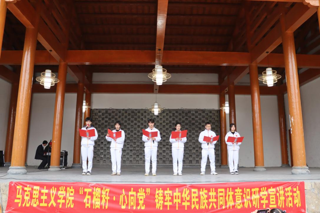 本网讯(文/王莽莽)3月17日,sunbet第一党支部赴郧西县湖北口回族乡坎子山村,开展了“石榴籽·心向党”铸牢中华民族共同体意识研学宣讲活动。