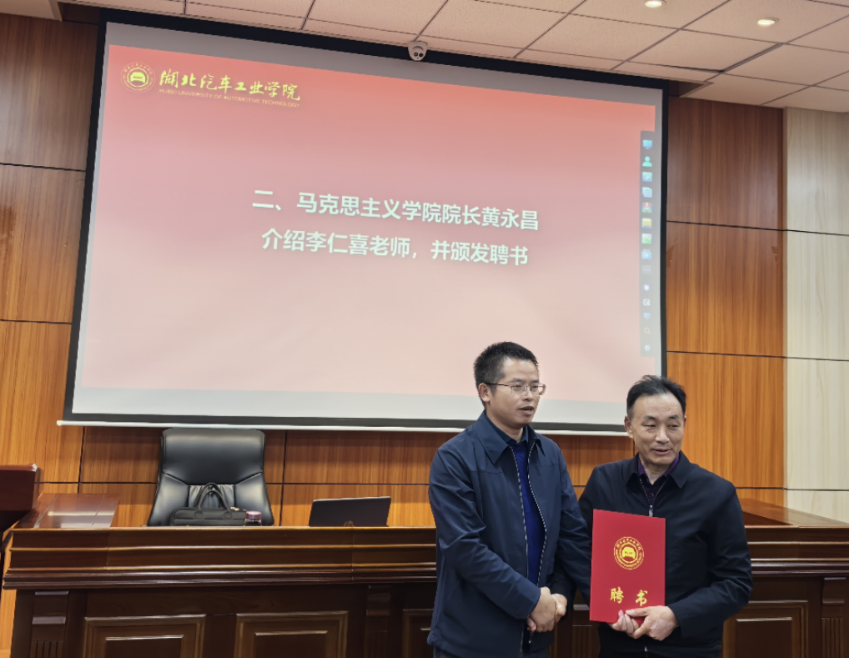 讲座前,成继平宣读了“sunbet行走的大思政课活动方案”。李仁喜受聘为校外指导老师,黄永昌为李仁喜颁发聘书。